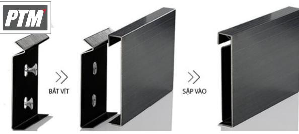 - Bước 3: Sập thanh nẹp len chân tường inox vào đế kẹp.
